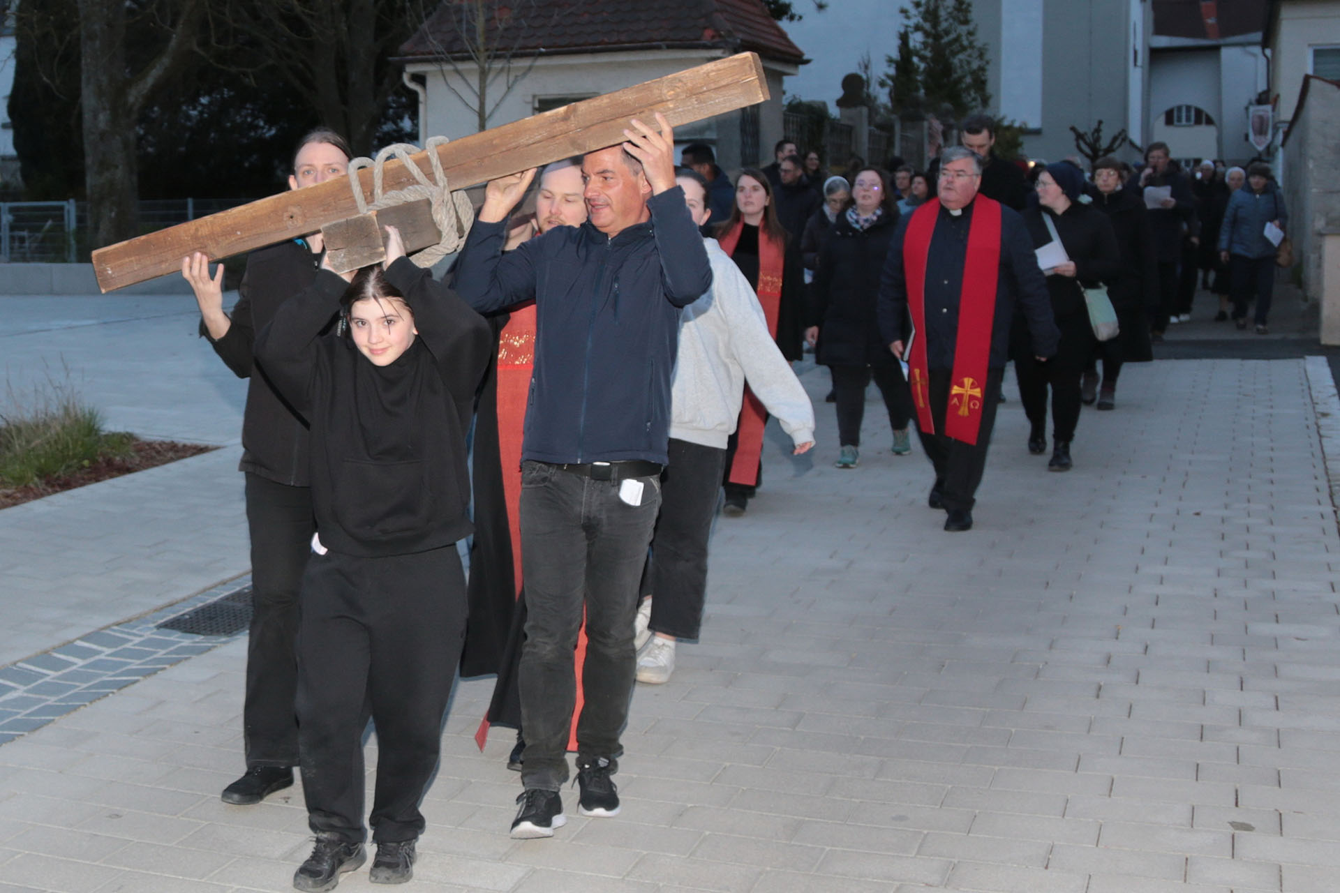 In Dillingen fand am Karfreitag, 3. April, um 19 Uhr ein ökumenischer Kreuzweg durch die Stadt statt. Die katholische Pfarreiengemeinschaft und die evangelisch-lutherische Kirchengemeinde starteten am Ulrichsplatz bei der Studienkirche. Die Prozession mit einem großen Holzkreuz führte an mehreren Stationen - unter anderem am Rathaus, Basilikaplatz und der Ölbergkapelle - vorbei bis zum Friedhof.